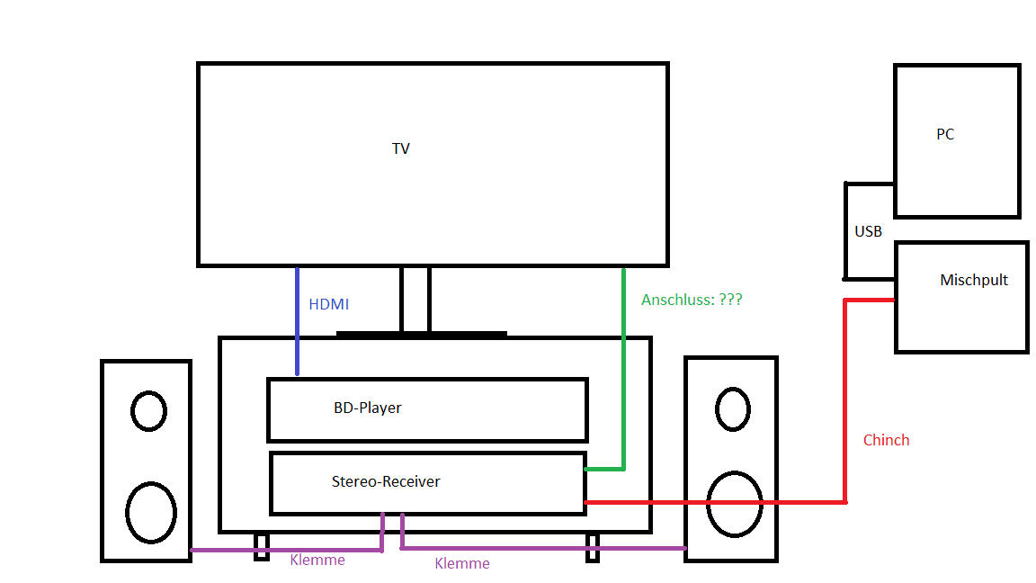 Habe mir mal die Bedienungsanleitung von dem Pioneer-Receiver angeschaut: Wo ich die Boxen anklemmen muss, ist mir klar aber wo wird denn der Fernseher angeschlossen?