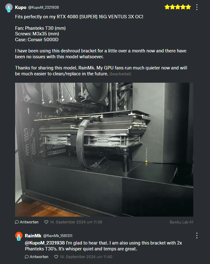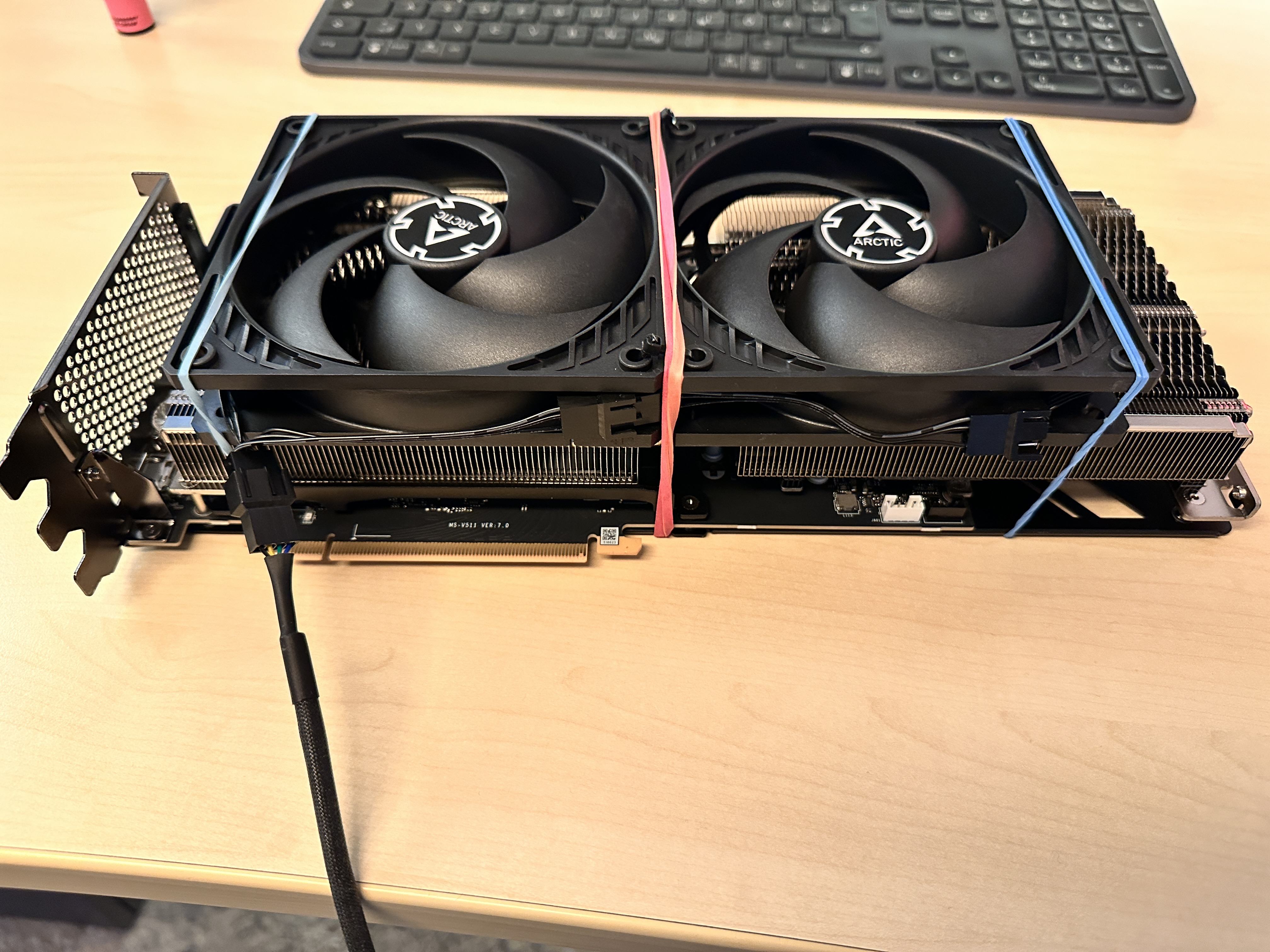 ich habe von meiner 4080 Super die original Lüfter runter und 2x P12 drauf, welche über das Mainboard gesteuert werden.