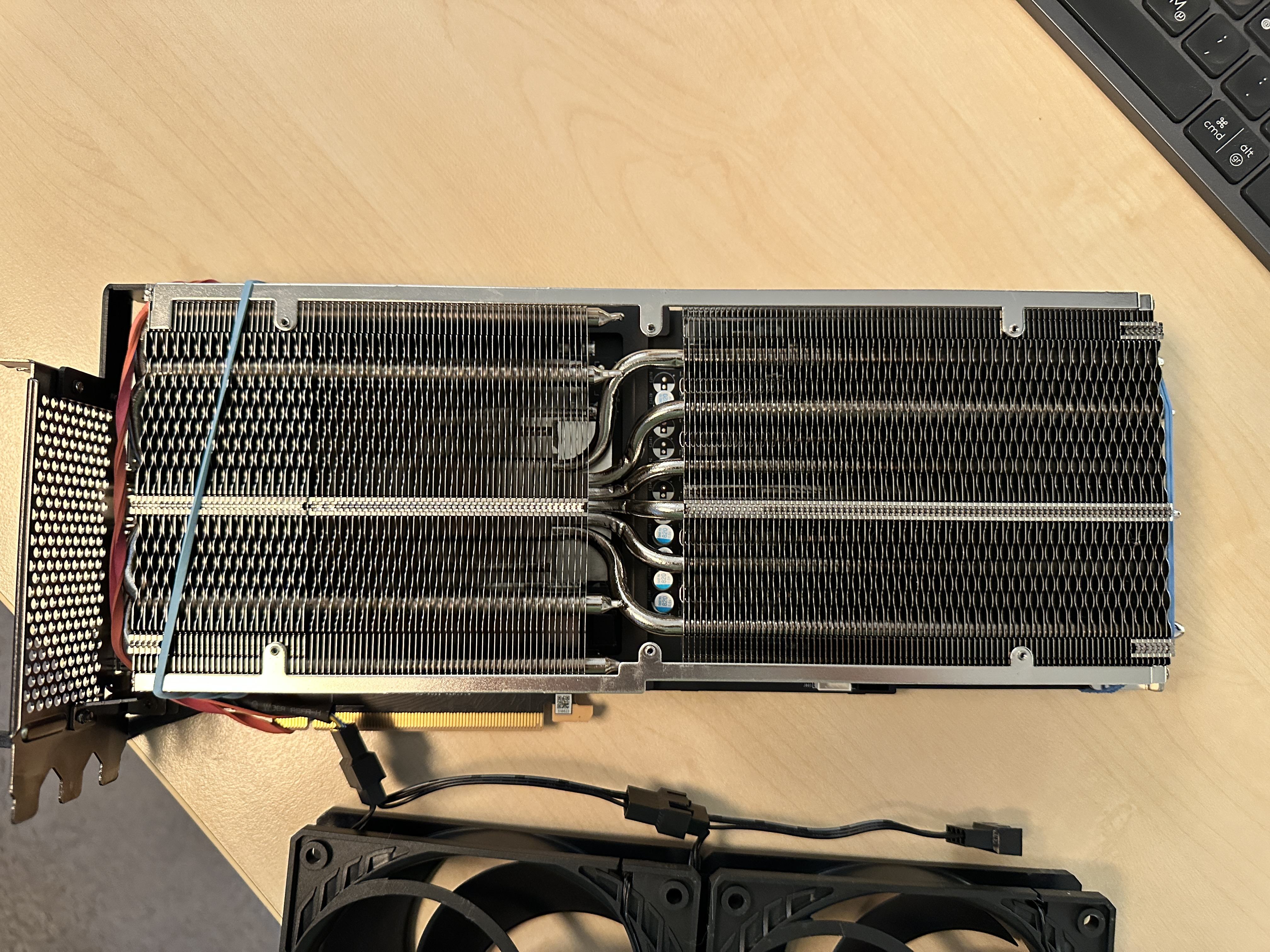 Ich hätte es gerne so, dass die Lüfter auf dem Shroud von unten mit Schrauben gehalten und von oben dann auf die GraKa geschraubt werden.