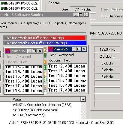 1. Beispiel mit MCI PC3200 2x256MB FSB 235/235