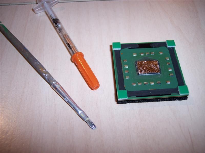 Ich hab das hier mal Interessiert durchgelesen, da ich auch mit dm Gedanke spiele meinen 170er zu Köpfen. Meine alten SC opterons habe ich alle geköpft und nie Probleme gehabt (siehe Bild). Allerdings ist mir bei einem Dual Core nicht ganz wohl (kostet ne ganze Ecke mehr und ist schwieriger :( ) . Auch bin ich mir nicht ganz sicher ob das bei mir überhaupt was bringt, da ich auh mit IHS bei 2800MHz und 1,52V nur 38° habe unter Vollast!