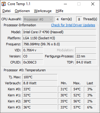 [i7 4790 mit Boxed-Kühler und Coolermaster "Master Gel" WLP.]