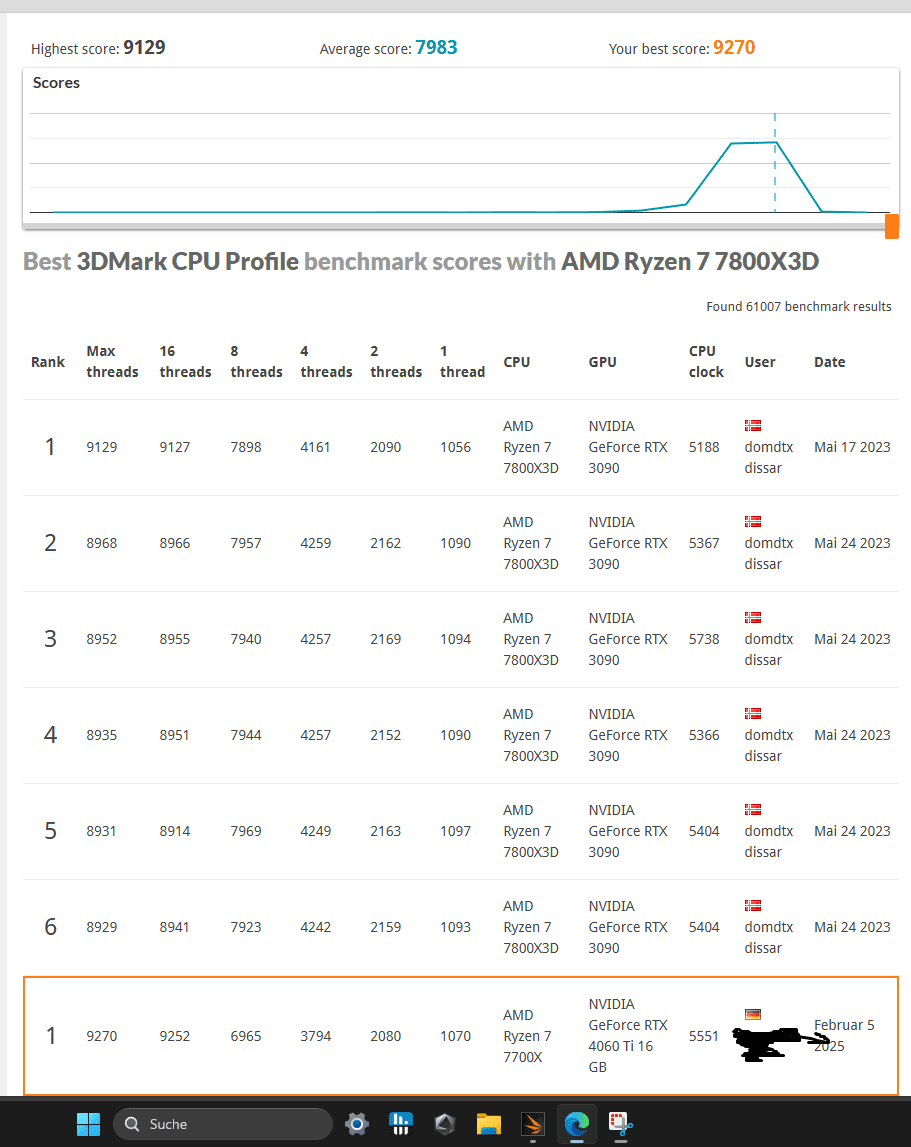 Wollte den 7800x3D gegen meinen 7700X tauschen. Jetzt habe ich noch mal den CPU Test von 3DMark gemacht und