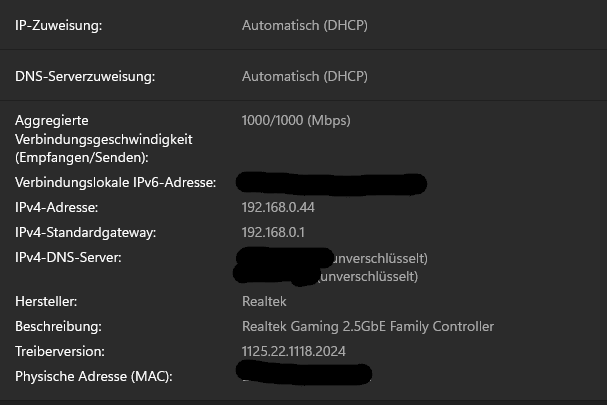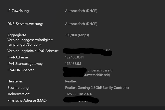 Win11 24H2 drosselt meine Netzwerkarte Realtek Gaming 2,5 Gbit auf 100 Mbit