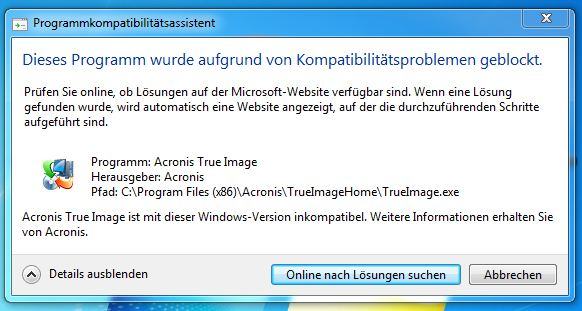 ich habe neulich Windows 7 Professional x64 auf meinem PC installiert. Nun wollte ich mein geliebtes Backup Programm "Acronis True Image Home", schon eine ältere Version, installieren. Auf meinem alten PC mit XP Home und 32 bit lief es einwandfrei.
