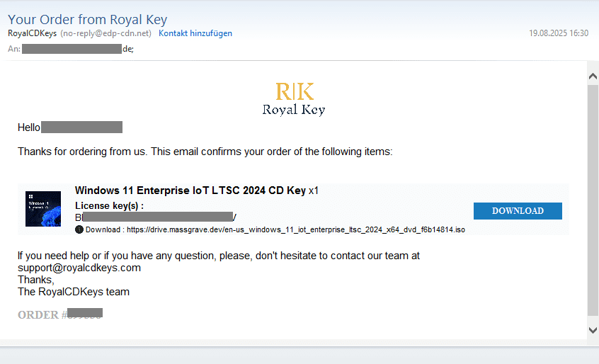 ich habe mal in der Mail geschaut, mein key war ein retail key für Windows 11 pro und stimmt über ein was in der IOT w10 drin steht