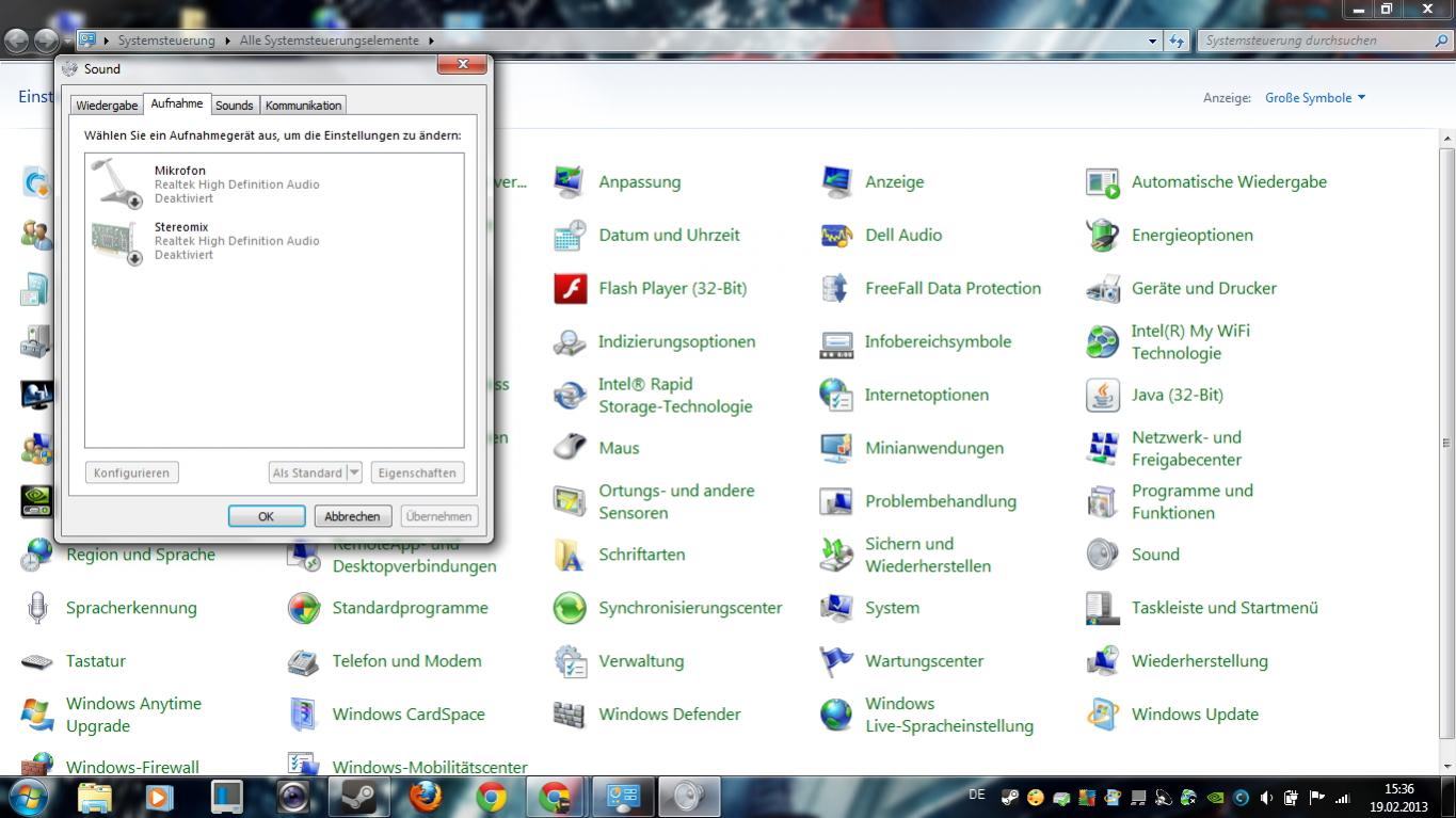 wenn ich unter systemsteuerung > sound gehe ist das nichts von wegen mikrofon.