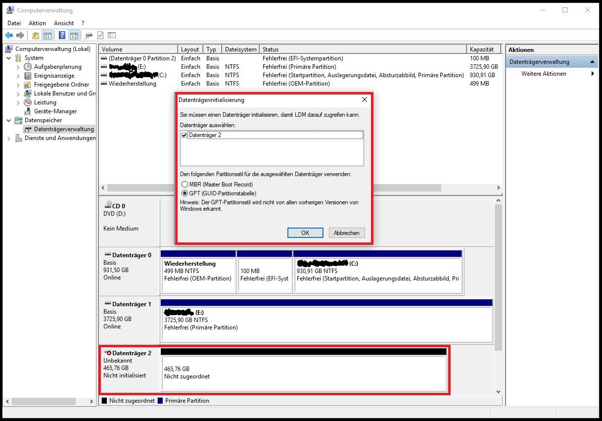 Gibt's da irgendwas bei der Datenträgerinitialisierung der SSD (ich nutze Win 10 Pro) zu beachten?