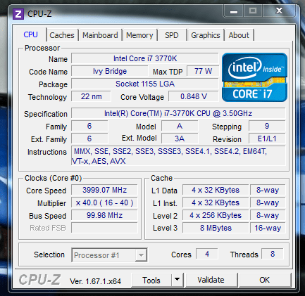 Hi, Ich habe einen Intel Core i7-3770K von 3.5 auf 4.0 GHZ übertaktet er läuft über Stunden Stabil nur das Problem ist es wird nicht von Windows Erkannt: