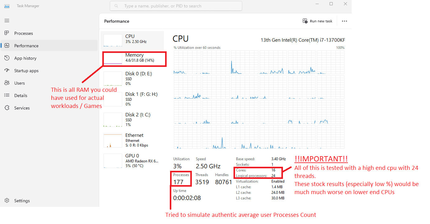 Einmal habe ich einen normalen User simuliert und einen der einfach nur dinge im hintergrund offen lässt / alles installiert was er sieht (RGB / maus software / motherboard driver + packages ect)