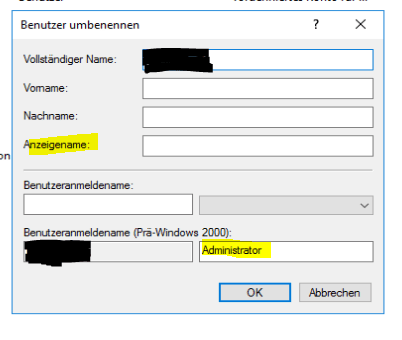 Windows Server 2016 Benutzernamen "Administrator" ändern