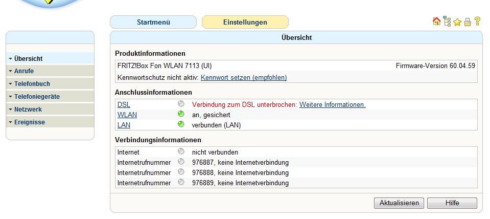 Problem: ich kann mich (mit z.B. meinem Handy) in den Router übers WLan einwählen, hab aber kein Internet.