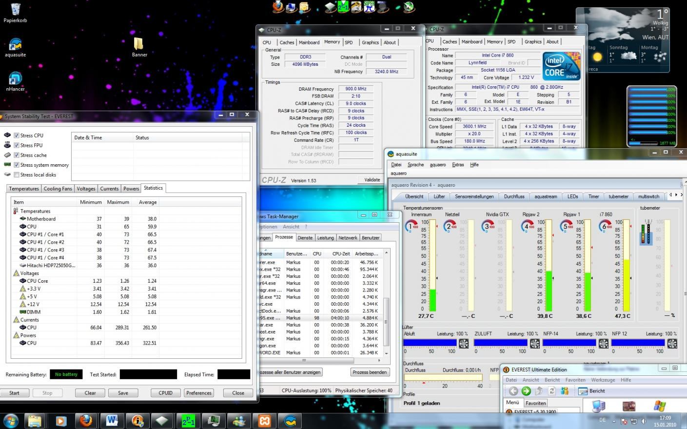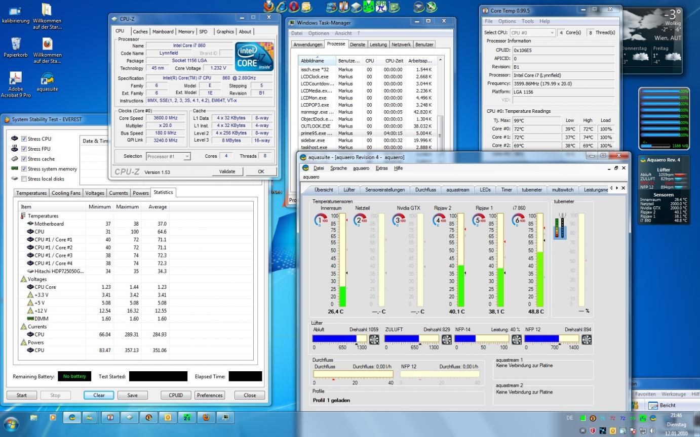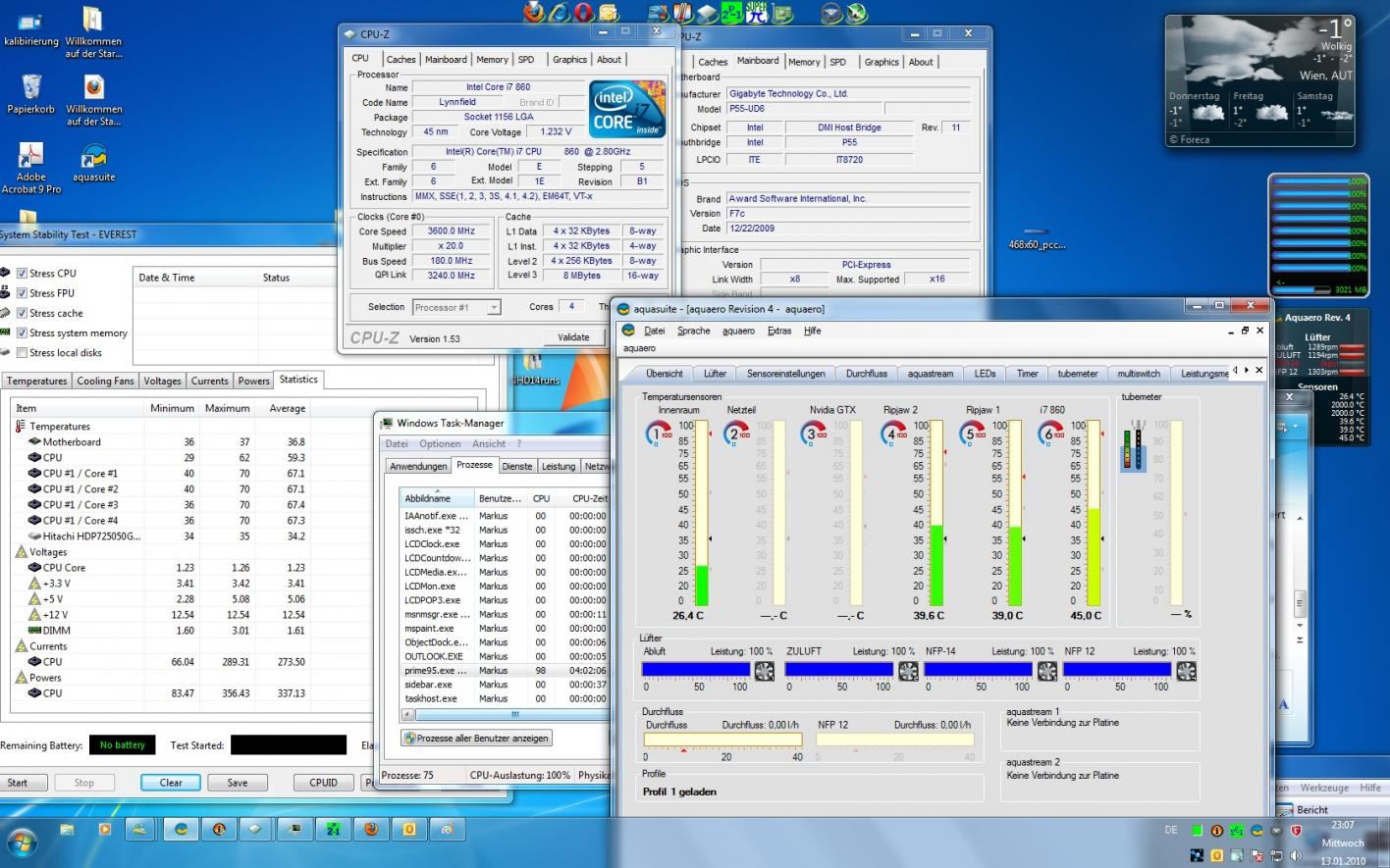 Wie muss ich die Screenshots deuten? Aquaero [Temp i7-860] minus [Temp Innenraum] = Delta-K?