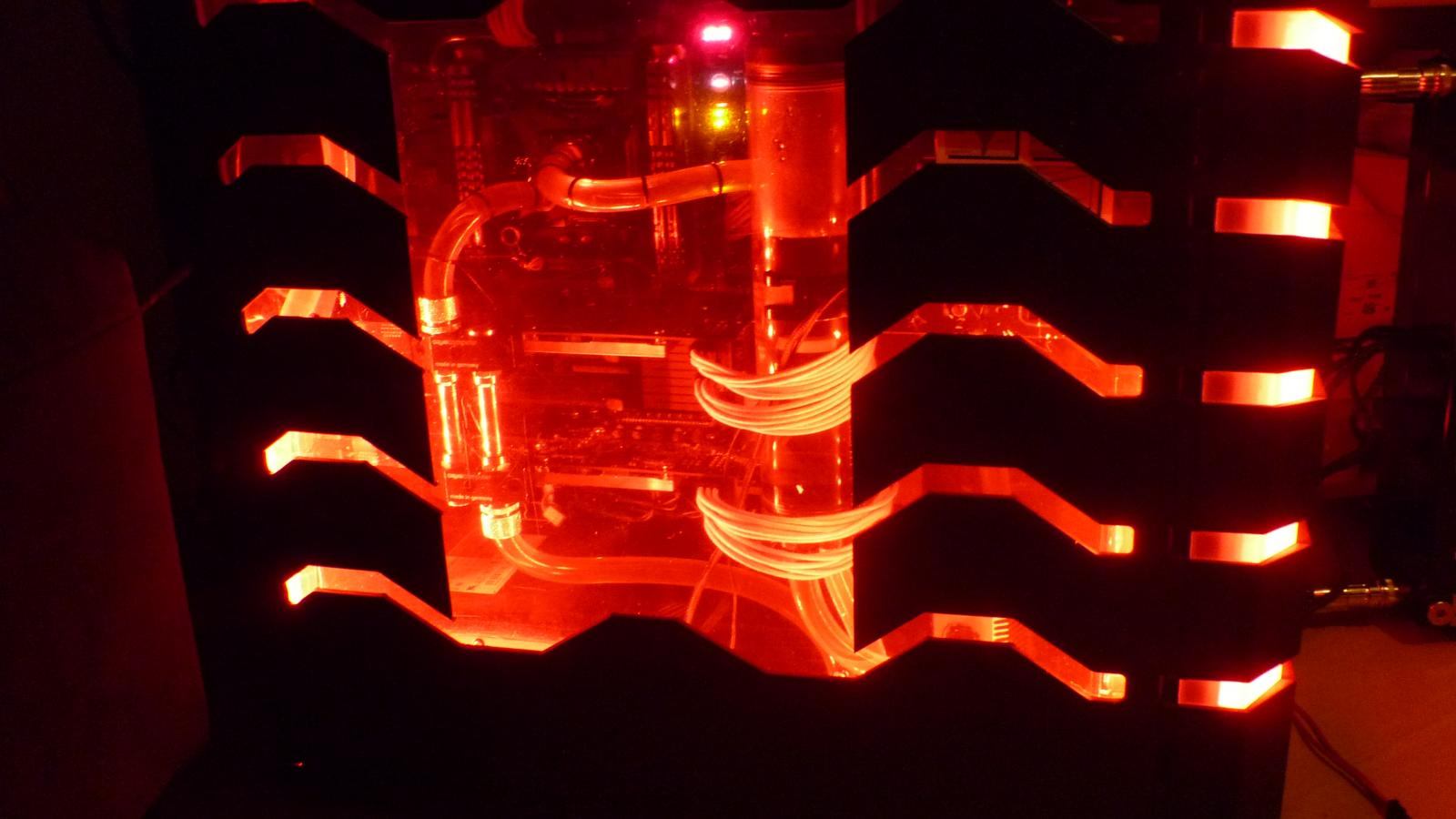 LED-Streifen ins Ghäuse gelegt und verklebt damit alles schön ROT leuchtet
