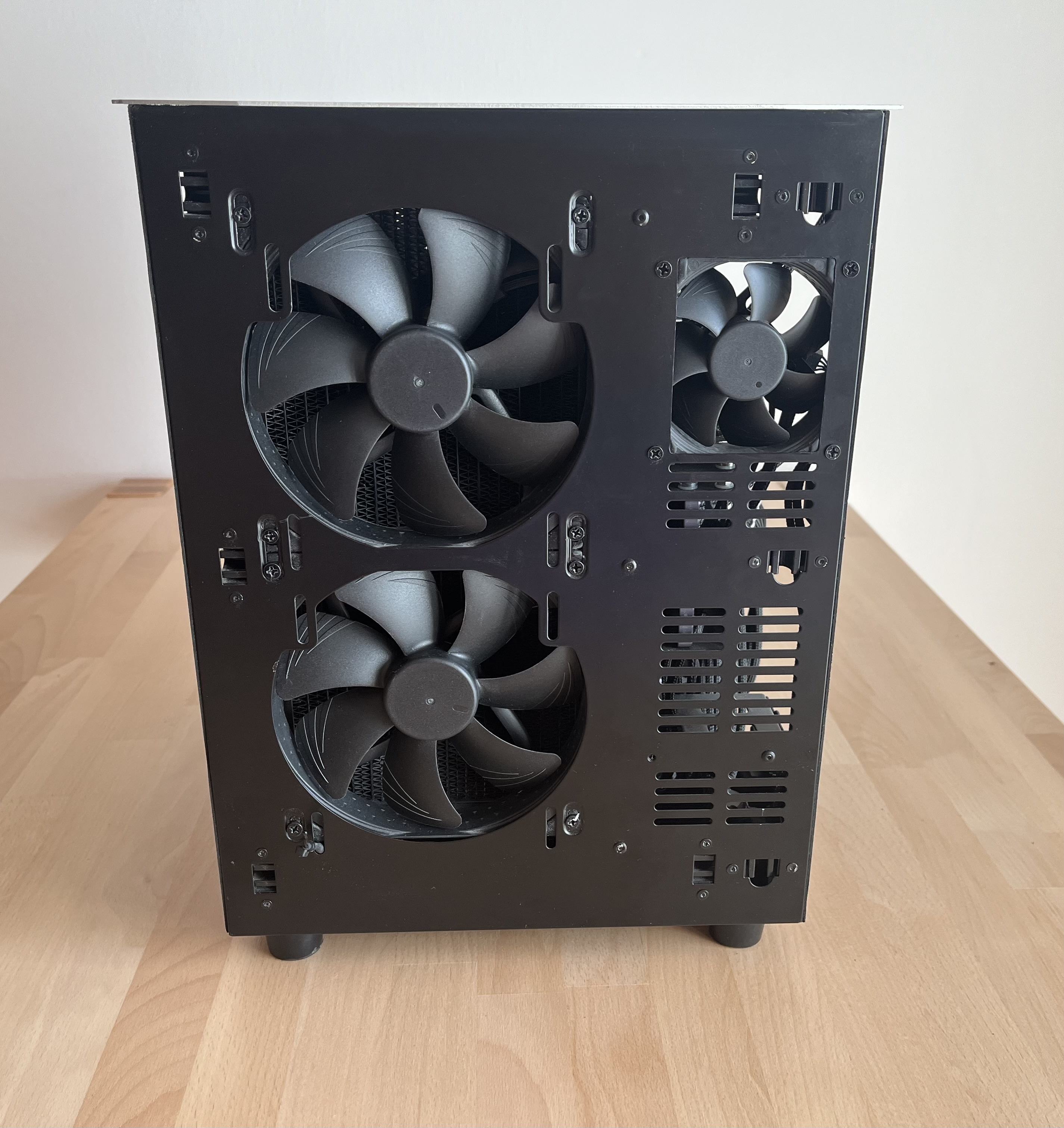 Nachdem das nun endlich geklärt war, konnte ich mich an die Lüfter und deren Verkabelung bis zum vorerst fertigen Endprodukt machen.