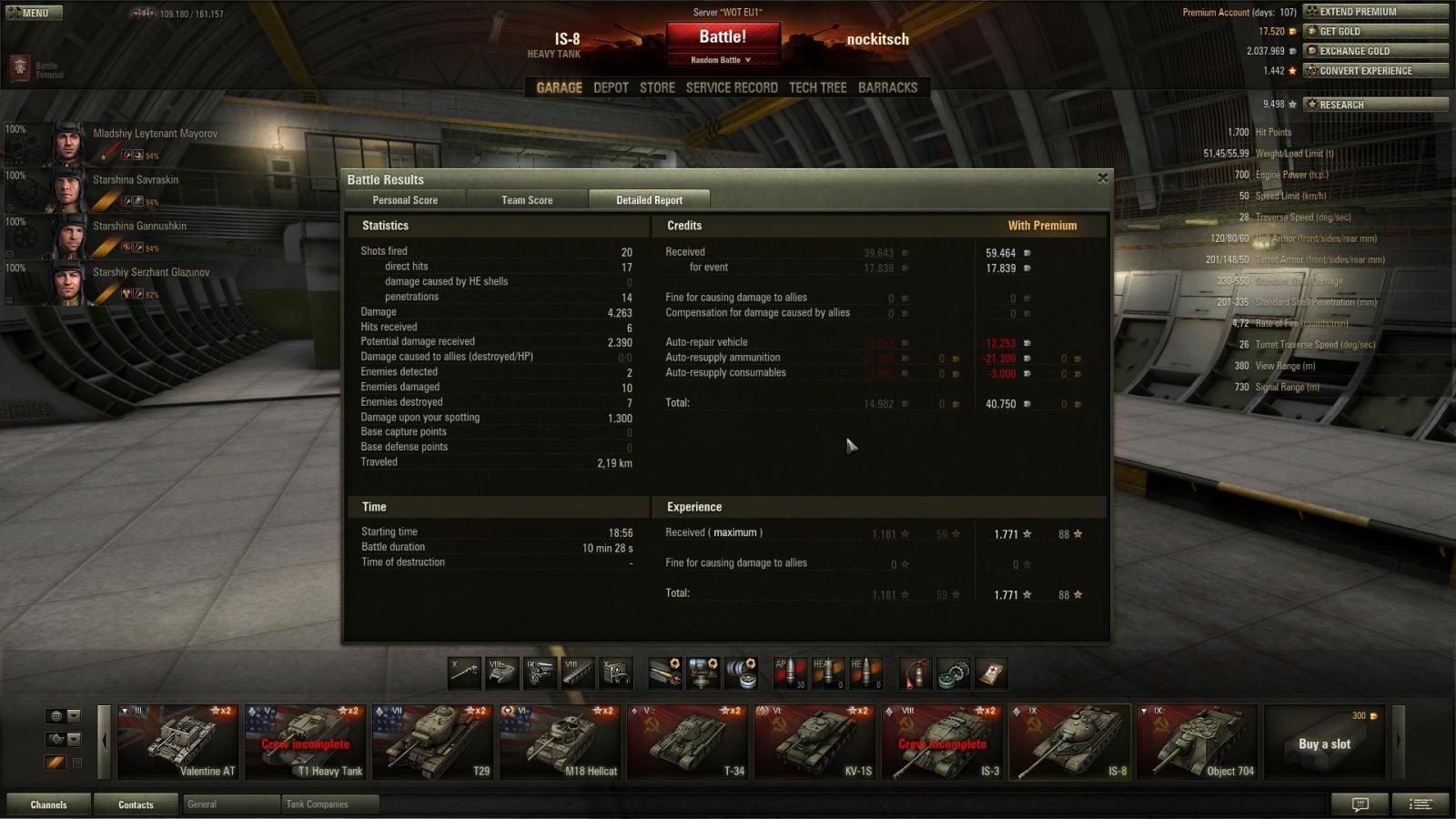 Aber nur knapp 1800 Exp. geworden, fürs Ass braucht man wohl paar T10 Gegner dabei. Naja dennoch schöne Runde weil wir schon deutlich hinten gelegen haben und nur durch gute Teamarbeit des anderen IS8 und nem Tiger gewonnen haben. Wie kann man am besten replays hochladen?