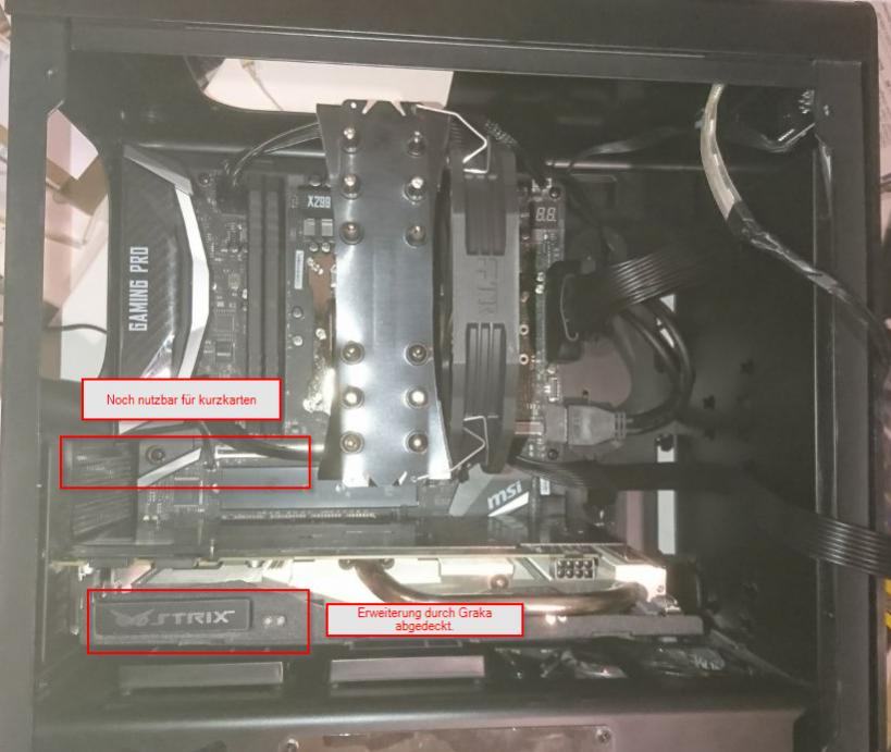 Grundsätlich ist aber für einen kleinen Gaming PC alles dabei was man benötigt, das die anderm PCI Plätze jetzt nicht nutzbar sind, stört mich wenig, da ja auch AC WLAN schon oben mit verbaut ist.