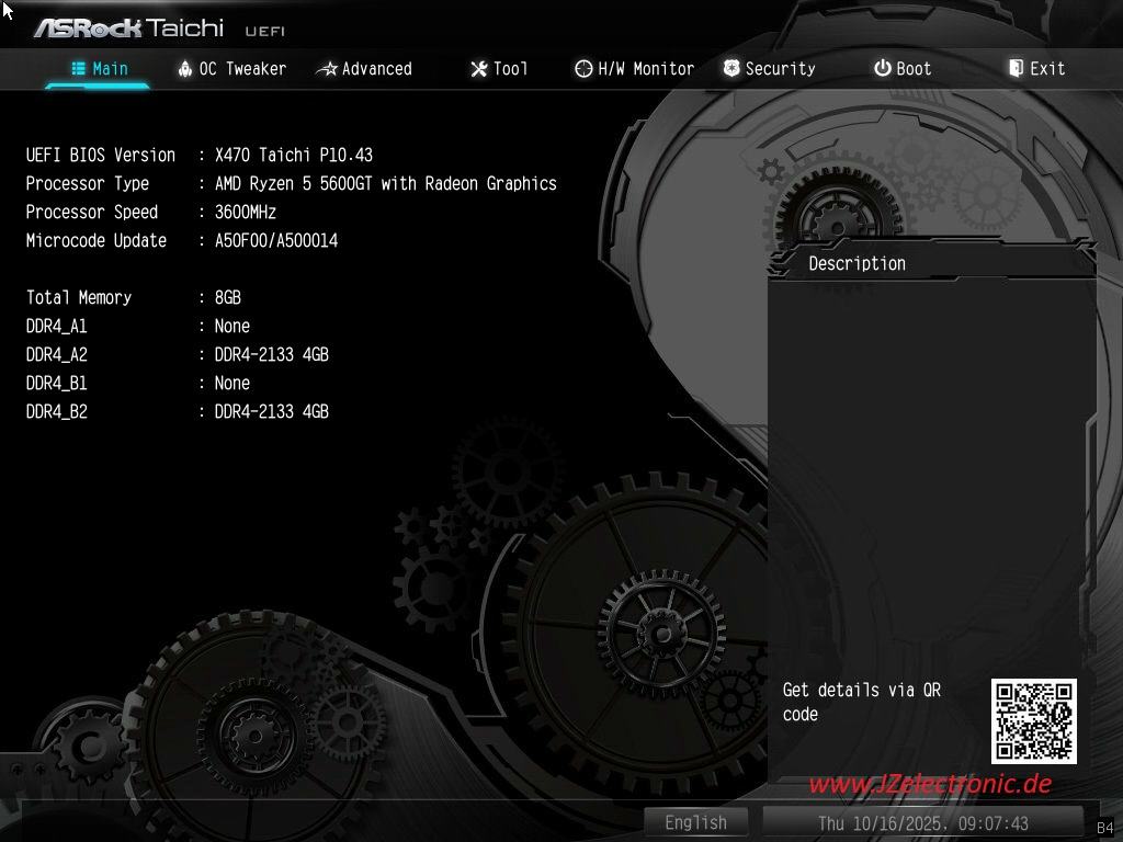 - Bios-Update auf 7.00, Success, Restart direkt ins Bios