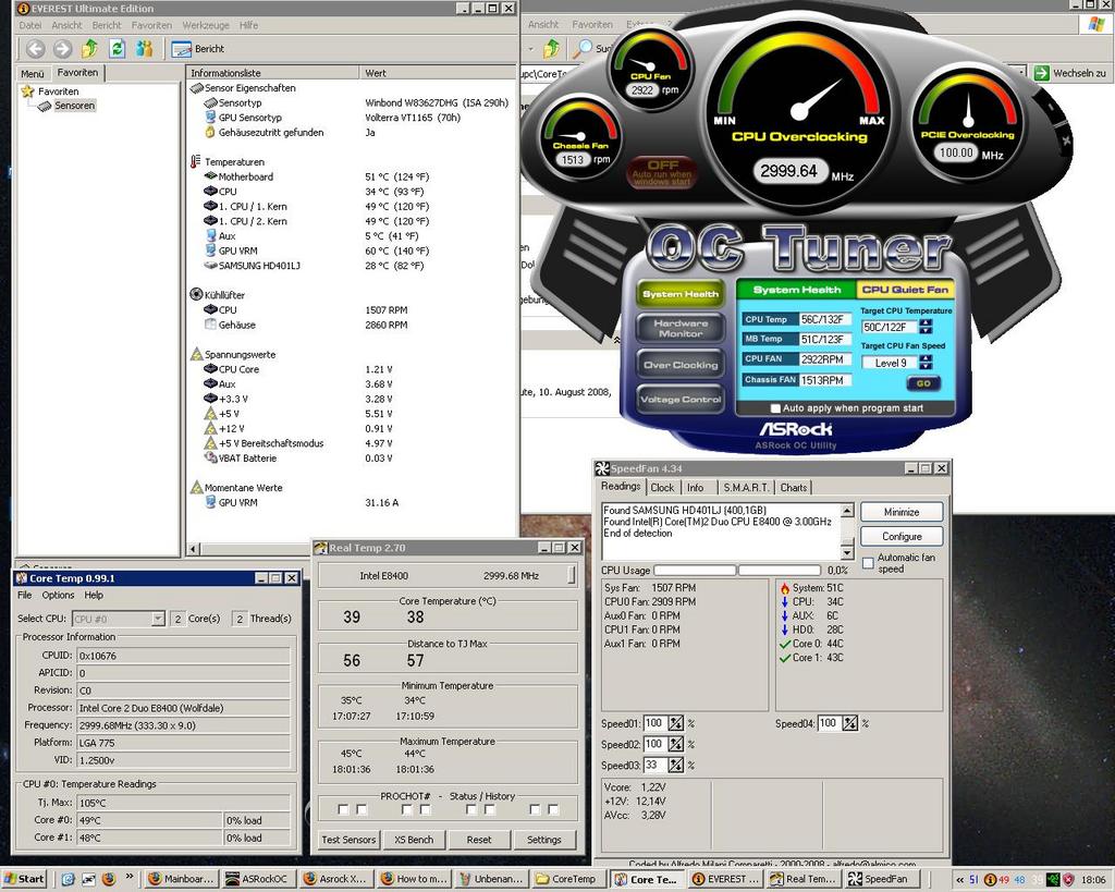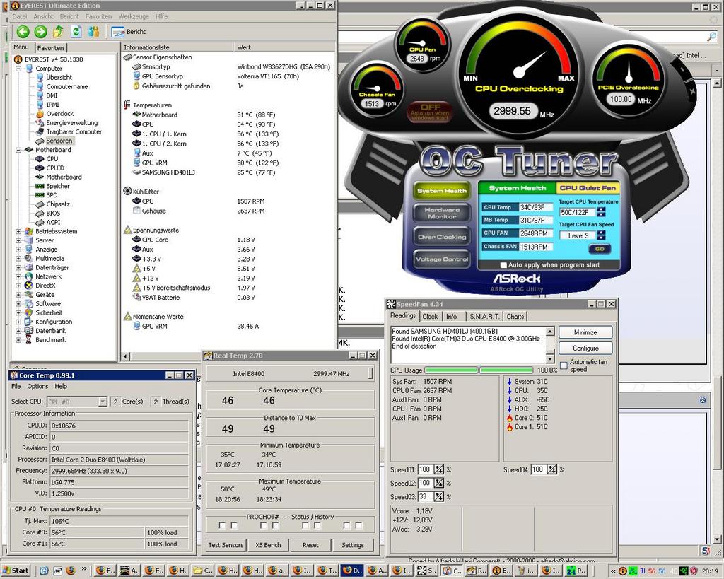 Es fällt auf, das sich die Bios Angaben(OC Tuner) kaum unter Vollast verändern.Diese konnte ich nur senken wenn ich einen Raumlüfter in meinen