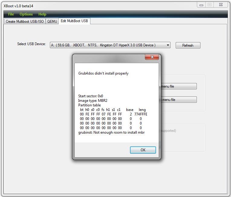 ich versuche seit einigen STUNDEN! mein USB Stick endlich mit XBoot lauffähig zu machen.