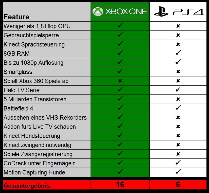 und ein "neutraler" vergleich das die xbox one das bessere system ist!