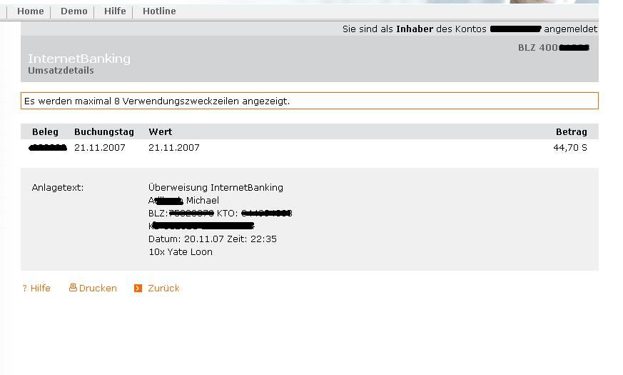 hmm ... naja aufjedenfall ist das Geld wieder auf meinem Konto ...