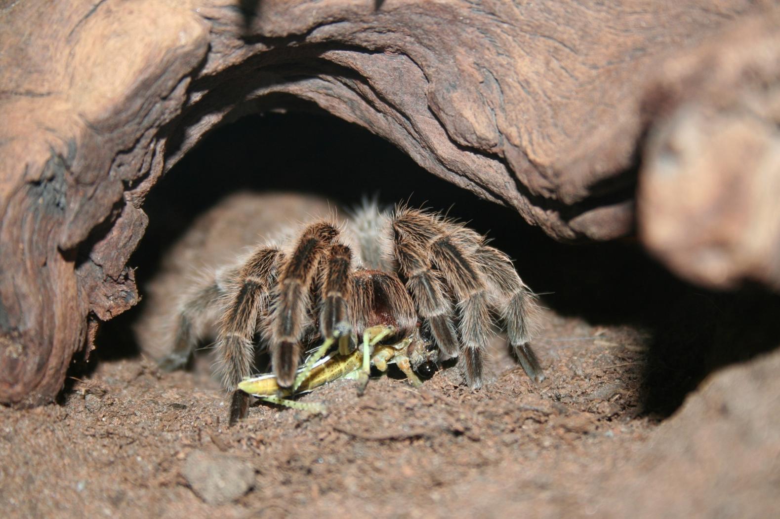 die spinne sitz ja im terrarium und kann da nicht raus und ist ungefährlich. versteh gar nicht wie man da angst haben kann :rolleyes: