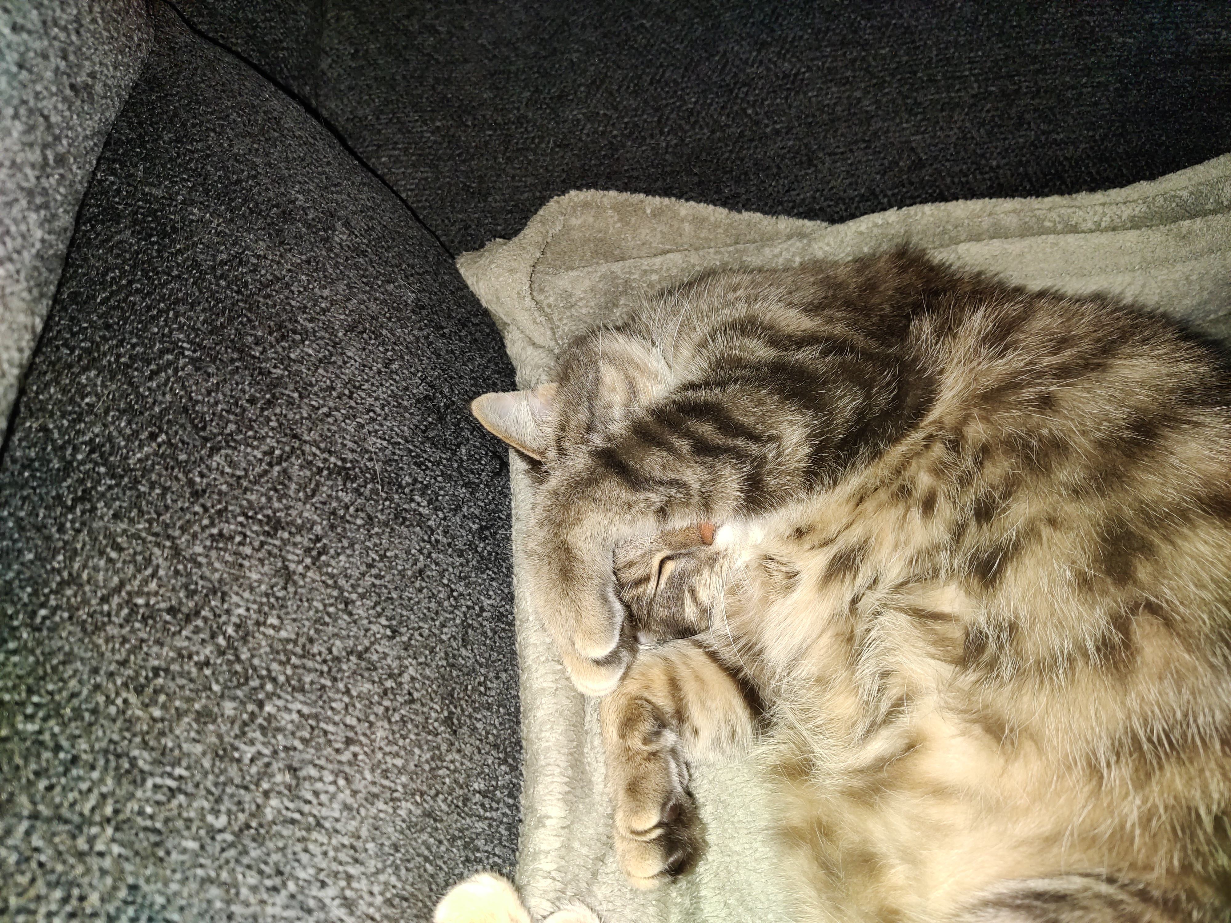 Leider gerade äußerst anstrengend das Hundeleben, weil sie laut Bluttest unter einer Haustaubmildbenallergie leidet, und die erste Injektion der Desensibilisierung es wieder maximal schlimmer gemacht hat. 😭 hier schläft sie grad mal ohne Kragen ganz friedlich…
