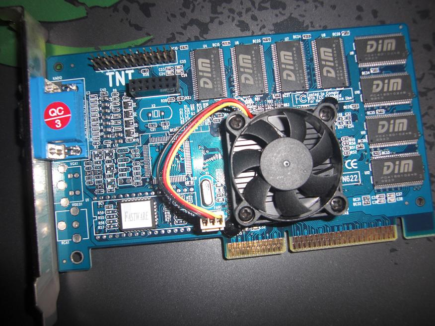 Wobei eine TNT eher selten einen Luefter drauf hatte. Aber Layout / AGP Version koennt gut hinkommen.