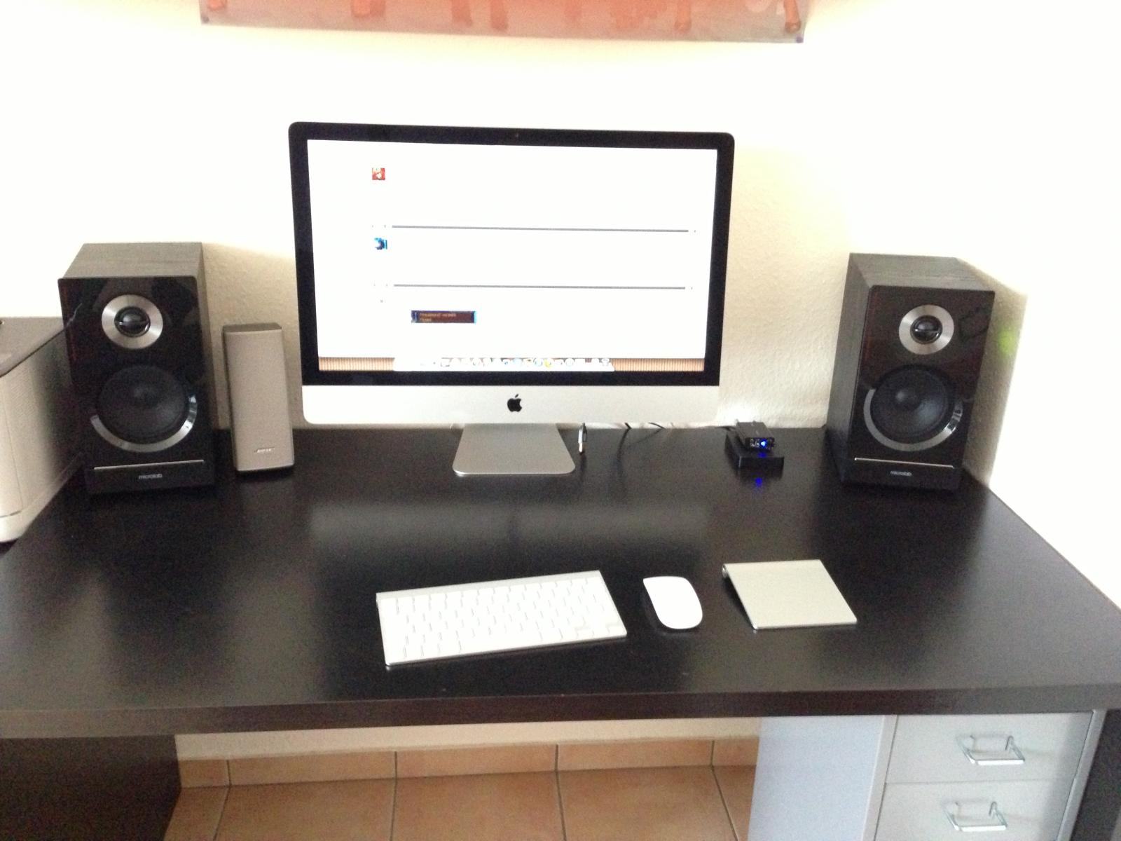 Wenn mal wieder Geld da ist, hole ich mir nen größeren Schreibtisch in weiß... wo mehr Platz für fettere Boxen ist :)
