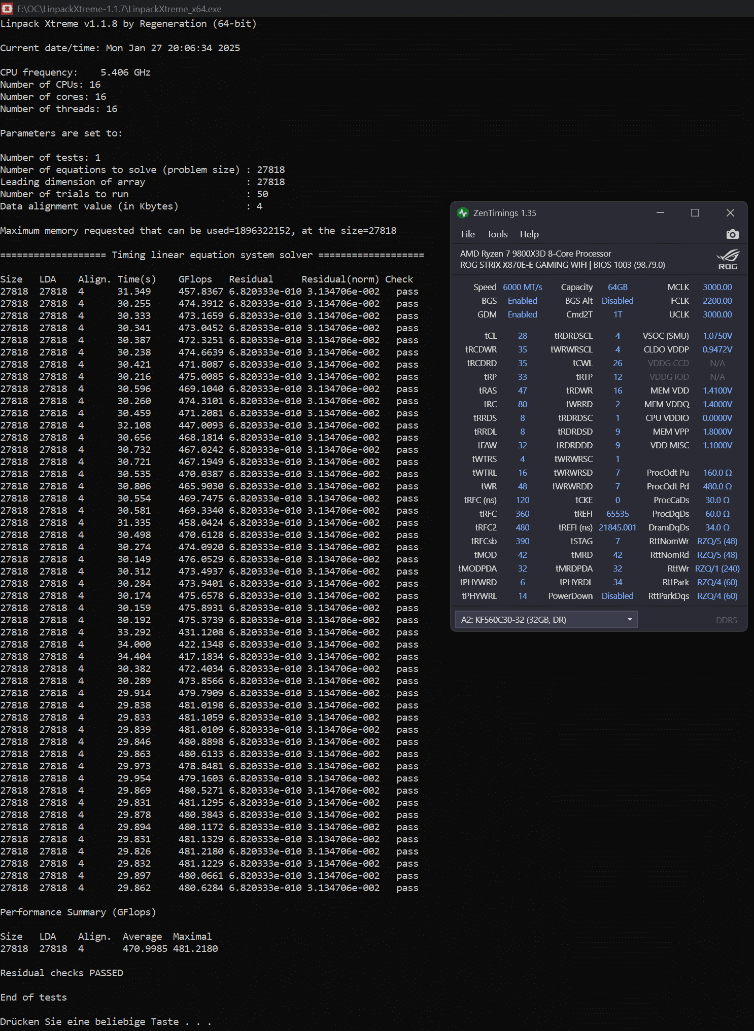 - AMD Ryzen-7 9800X3D (CO: +0/ -38)