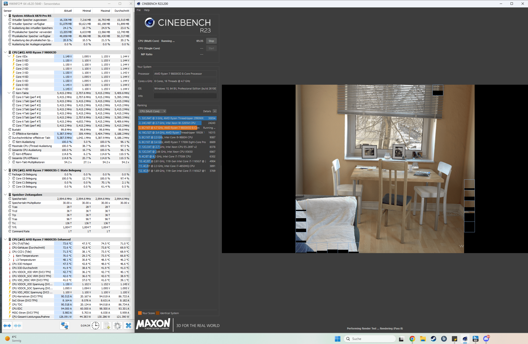 Und was komm da am Ende bei rum an Punkten?Hab meinen 9800X3D auf +200 PBO und -30 CO betrieben, das lief stabil. Bin jetzt mal auf -40 runter. Cinebench sieht gut aus, rennt 5415MHz auf allen Kernen bei 1,13-1,15V. Temperaturen liegen knapp über 70°C mit Wakü.