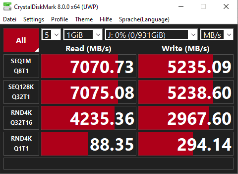 Das war ein Test mit fast leerer SSD, jetzt mit Daten drauf komme ich auch nicht mehr über 7000,nur noch 6940