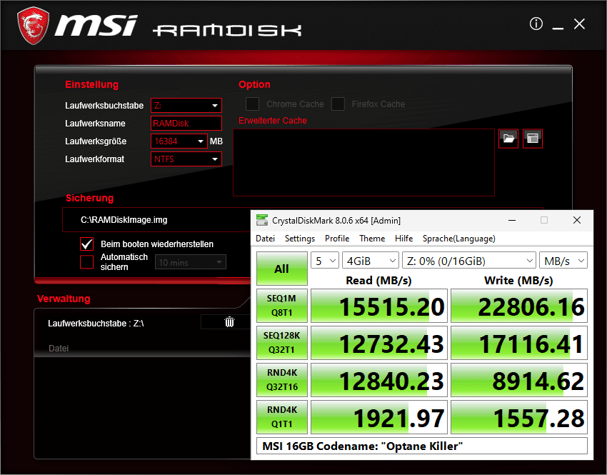 Die Ergebnisse sind für beide Speicher ok