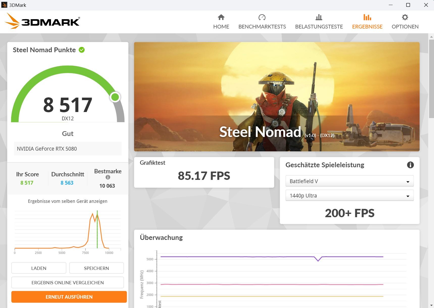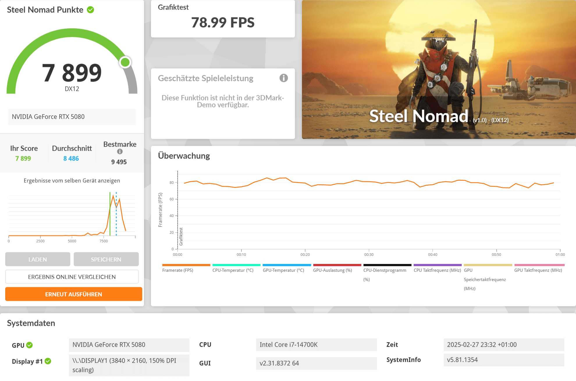 3.2 3D-Mark Steel Nomad: 7899 Punkte DX12, 78.99 FPS