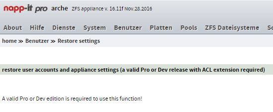 Datengrab meldet mir beim Restore der napp-it Einstellungen sinngemäß keine Pro-Lizenz, in Extentions/Register/Edit steht aber meine Lizenz drinne, auch bei Appliance Group ist dieser Server noch enthalten.