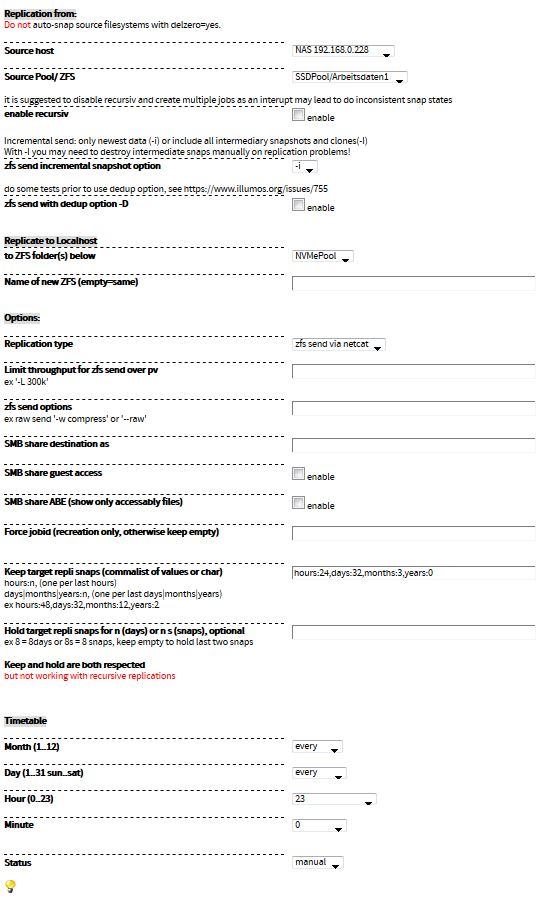 Prinzipiell scheint die Appliance Gruppe ja zu funktionieren. Werden denn die ZFS Dateisysteme der Gegenstelle im Menü Ectensions > Appliance Group angezeigt wenn man auf ZFS klickt.