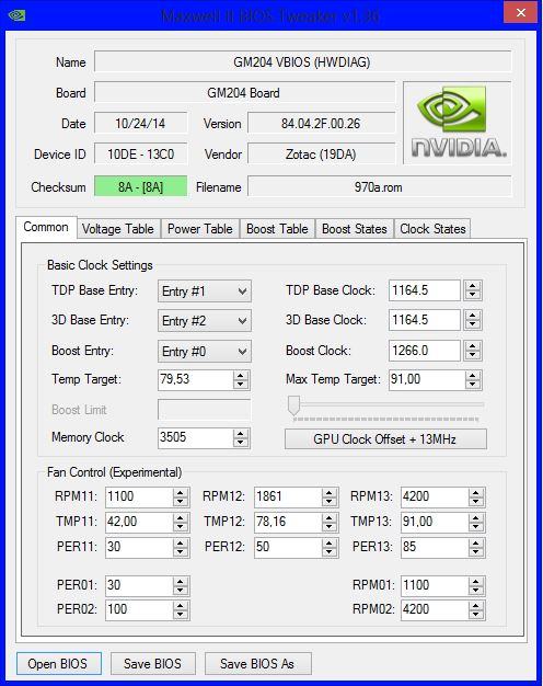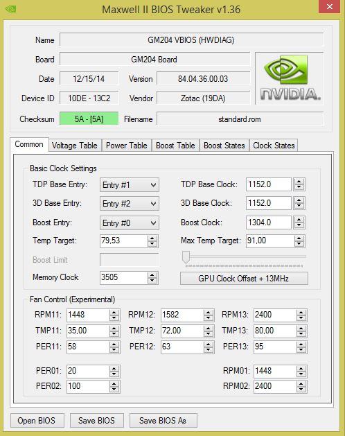 Man könnte davon ausgehen das Zotac eigentlich mit 26%/1092rpm ausliefern wollte (diese Drehzahl hatte auch die GTX780 Amp Edition daher meine Vermutung), denn bei erreichen der 42° geht die Drehzahl auf ~1280rpm (sinkt also), sowie es auch bei PER11 eingetragen ist, was derselbe Wert ist wie bei PER01 nur das er hier scheinbar funktioniert!