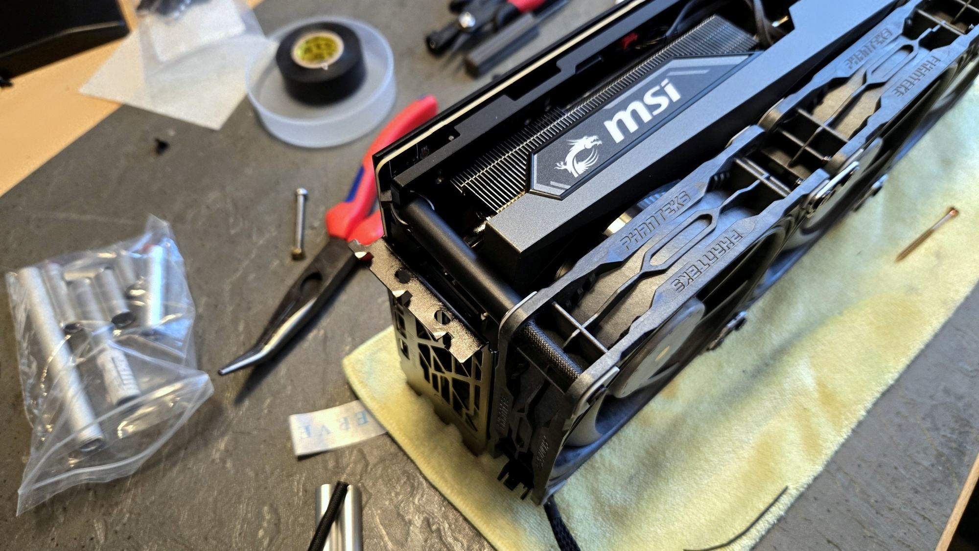 Ich würde so etwas am liebsten auch mit meiner Asus TUF RTX 4070Ti Super machen, da die Lüfter der Grafikkarte nach nun bald einem Jahr echt ausgelutscht sind. Sie geben bei 1000 Umdrehungen (Minimaldrehzahl) halt leider Lagergeräusche von sich. Hat das schon jemand für die genannte Karte gemacht/gesehen?