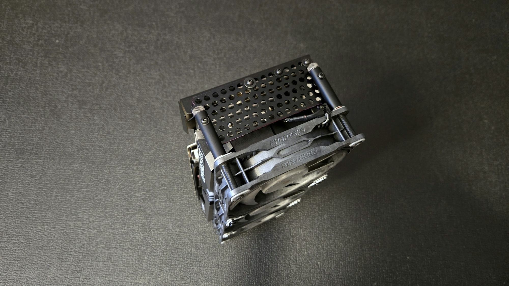 Beim Ausmessen/ Ausrichten der T30-Lüfter hatte ich den GPU-Rahmen nochmal montiert, um das Spaltmaß bei eingesteckter Karte und Mainboard abzugleichen. Im Grunde kann man sich hierfür am GPU-Rahmen halten. Da kam mir die Idee, dass ich die T30-Lüfter auch direkt auf den GPU-Rahmen montieren könnte.