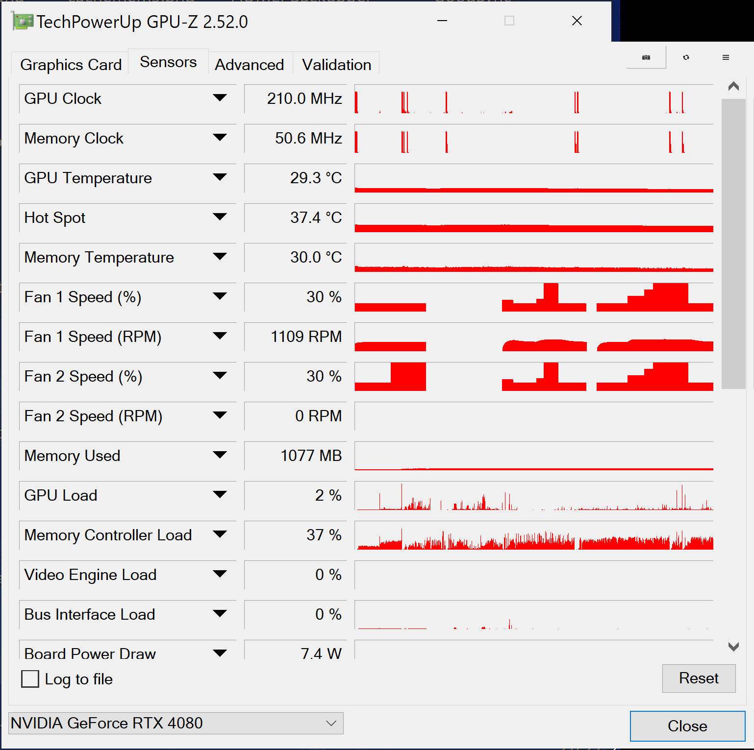 Die Lüfter laufen nun zwischen, 200rpm im Idle und max. bei 1370rpm/74°C, mit noch etwas Luft nach oben.