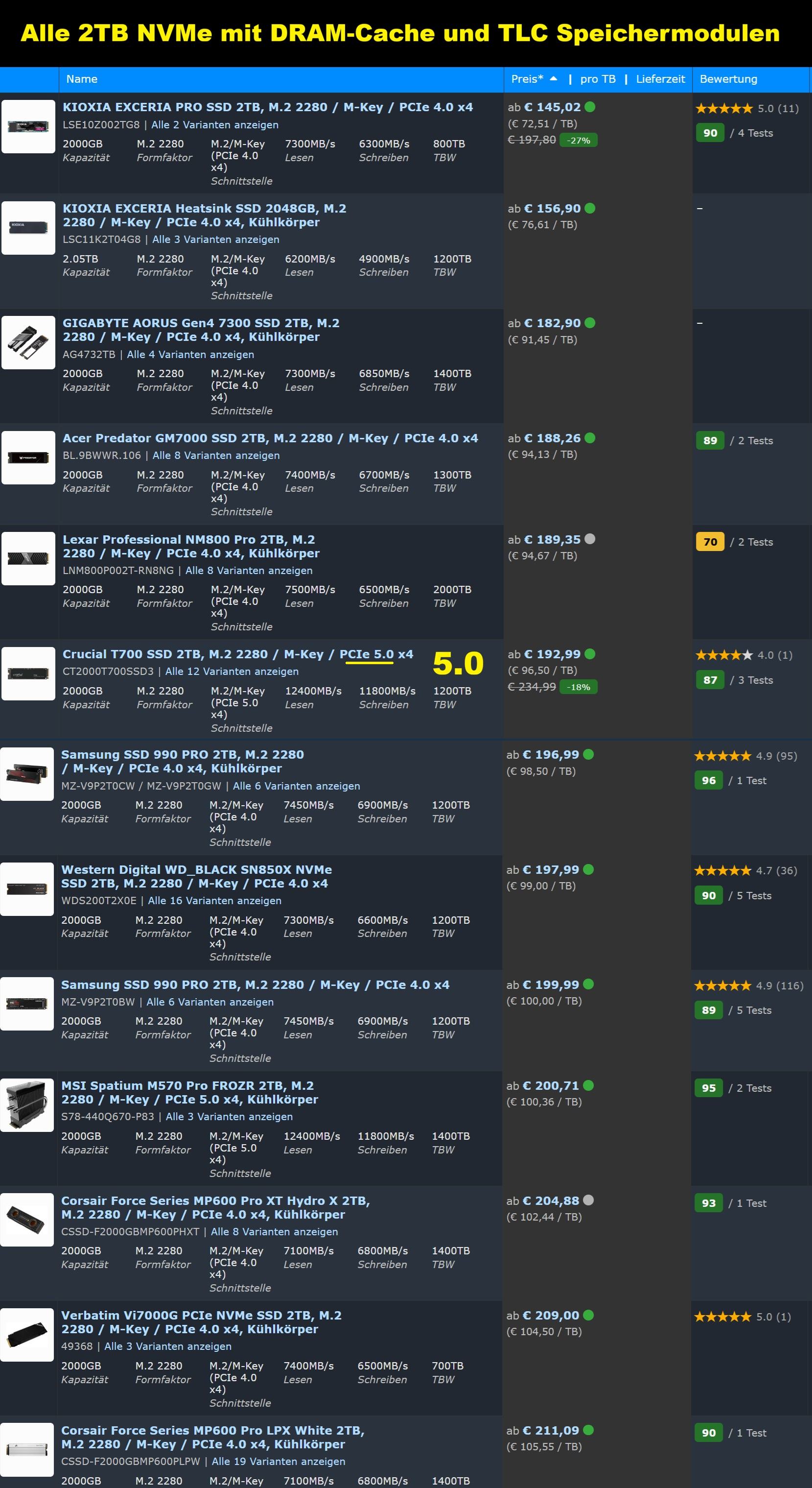 - SSD: WD Blue SN580 2TB (NVMe, SMART 100 %, keine Fehler)