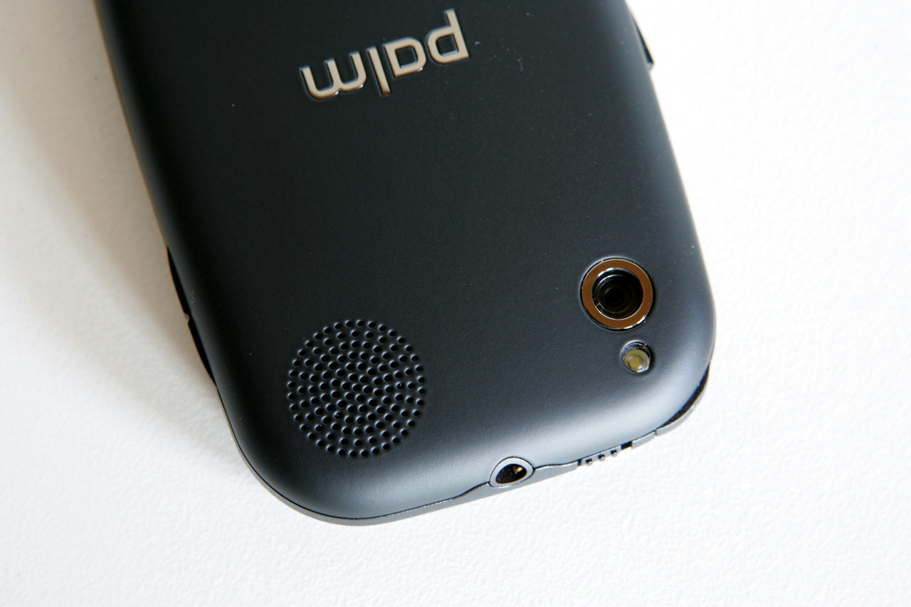 Schaut man genauer auf die Rückseite des Palm Pre, erblickt man neben dem Lautsprecher auch noch die Optik der 3-Megapixel-Kamera sowie den dazugehörigen LED-Blitz.