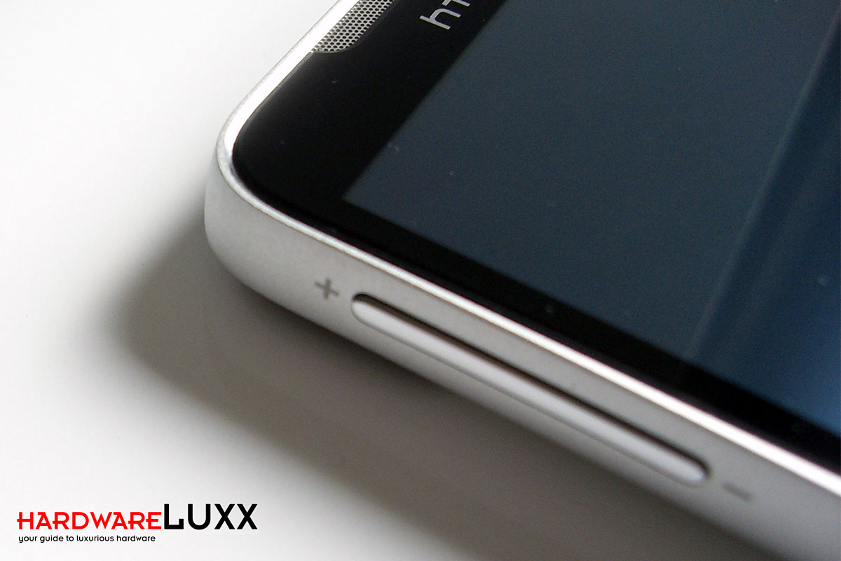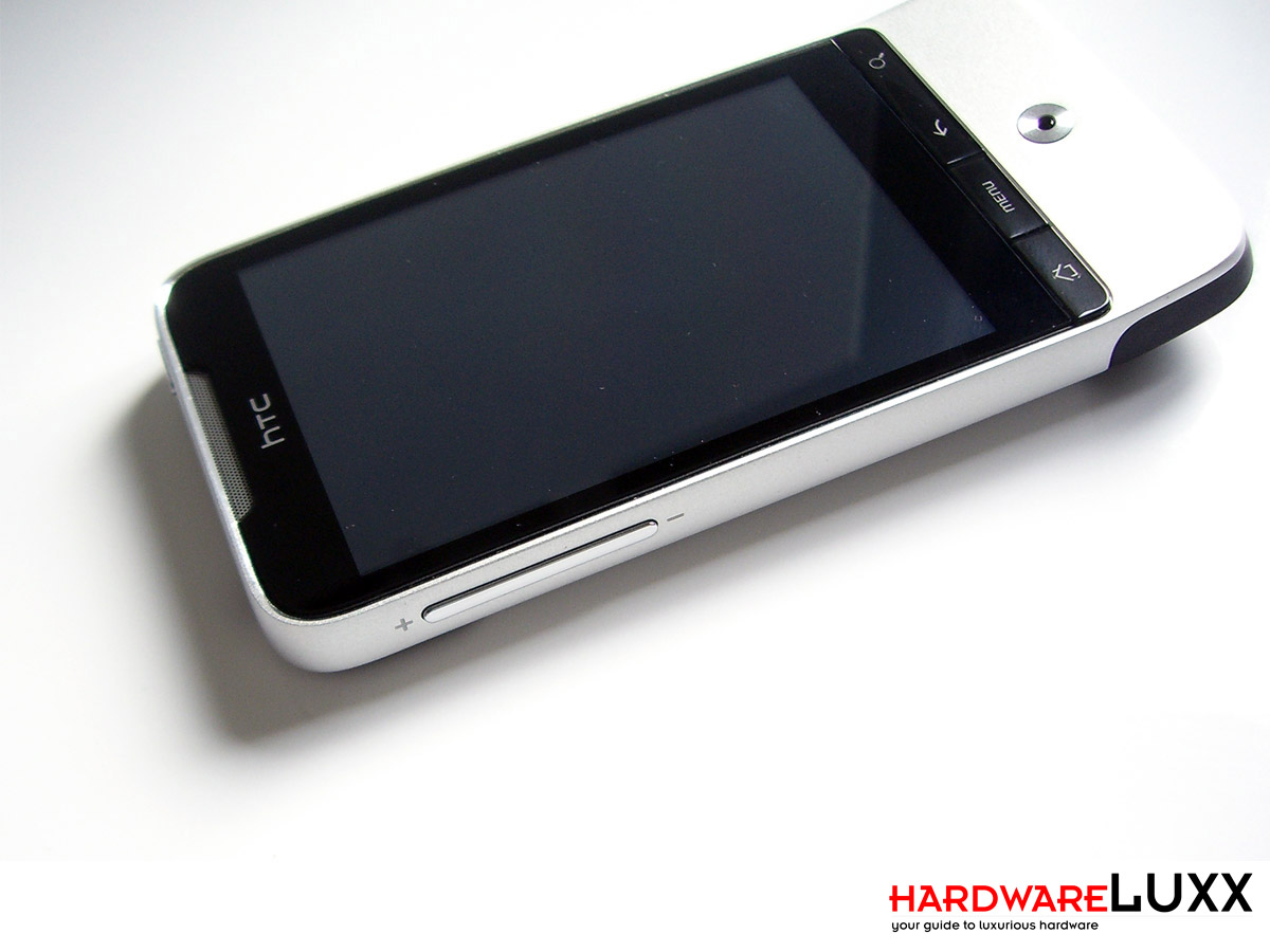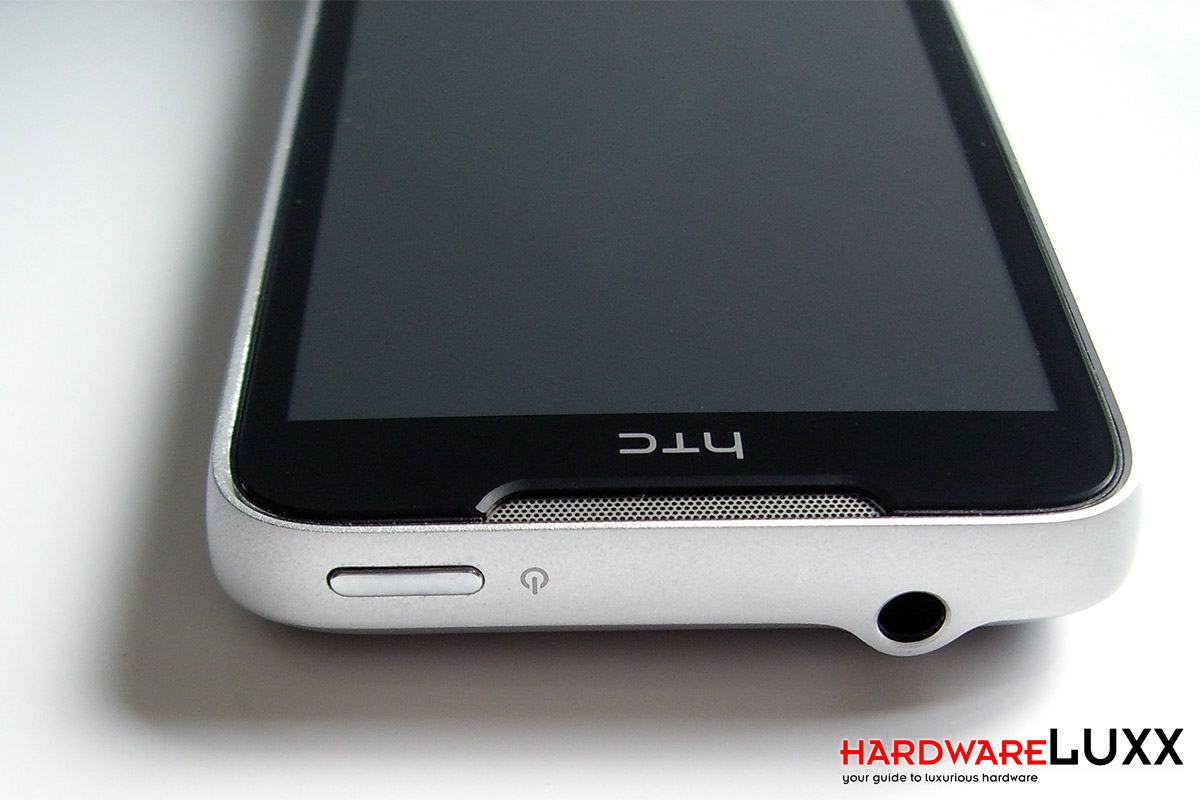 Am oberen Ende finden sich der Lautsprecher, ein Power-Schalter sowie ein 3,5-Millimeter-Klinke-Adapter für das mitgelieferte Headset oder aber die eigenen Kopfhörer. Unter der Hörmuschel prangt in silbernen Lettern das HTC-Logo - präsent, aber dennoch wenig aufdringlich. Auch hier ist die nahtlose Verarbeitung sehr gut zu erkennen, wobei sich zwischen den Rahmen und das Display gerne etwas Schmutz setzt. Am Ohr fühlt sich das Telefon leider nicht so angenehm an, was wohl an dem recht kantigen Äußeren liegt. Doch ist dies zum einen natürlich Geschmackssache und zum anderen für Wenigtelefonierer irrelevant.