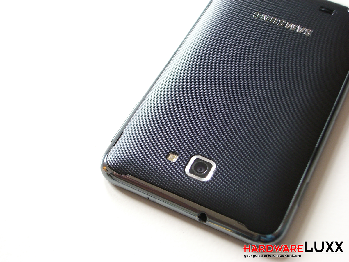 Auf der Rückseite findet sich die 8-MP-Kamera mit LED-Blitz sowie ein Lautsprecher, die Oberseite beherbergt lediglich den 3,5-mm-Klinkeanschluss, die Unterseite den microUSB-Anschluss mit MHL-Fähigkeit. Samsung-typisch ist die Akkuabdeckung aus recht dünnem aber stabilem Plastik. Natürlich wäre für ein Smartphone dieser Preisklasse eine Metallabdeckung schöner, diese würde das 178g wiegende Gerät aber nur weiter erschweren. Trotz Plastikabdeckung fühlt sich das Gerät aber sehr wertig an und kann mit hoher Verwindungssteifheit glänzen.