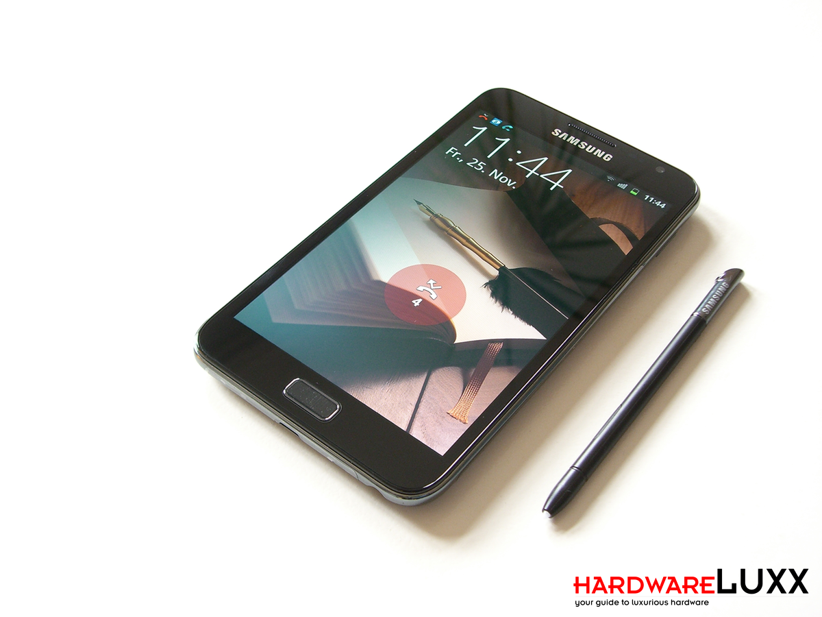 Zu guter Letzt: der Stylus. Dieser ist relativ groß ausgefallen, wodurch er auch mit großen Händen absolut komfortabel bedient werden kann. Ein kleiner Knopf an selbigem erlaubt es, das Smartphone ohne die Buttons unter dem Display zu bedienen, die mit dem Stift nämlich nicht aktivierbar sind (ausgenommen die Hardware-Taste in der Mitte). Der Stift ist sehr leicht, hat eine berührungsempfindliche Spitze und besteht vollständig aus Plastik. Der Stylus ist gerade jetzt besonders wertvoll: im Winter funktionieren die kapazitiven Displays nur mit speziellen Handschuhen - durch den Stift lassen sich die eigenen Handschuhe weiter tragen und das Smartphone dennoch bedienen.