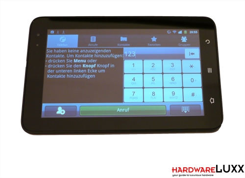 ZTE nutzt die Telefonfunktionen von Gingerbread. Mit eingelegter SIM-Karte kann telefoniert und gesimst werden.