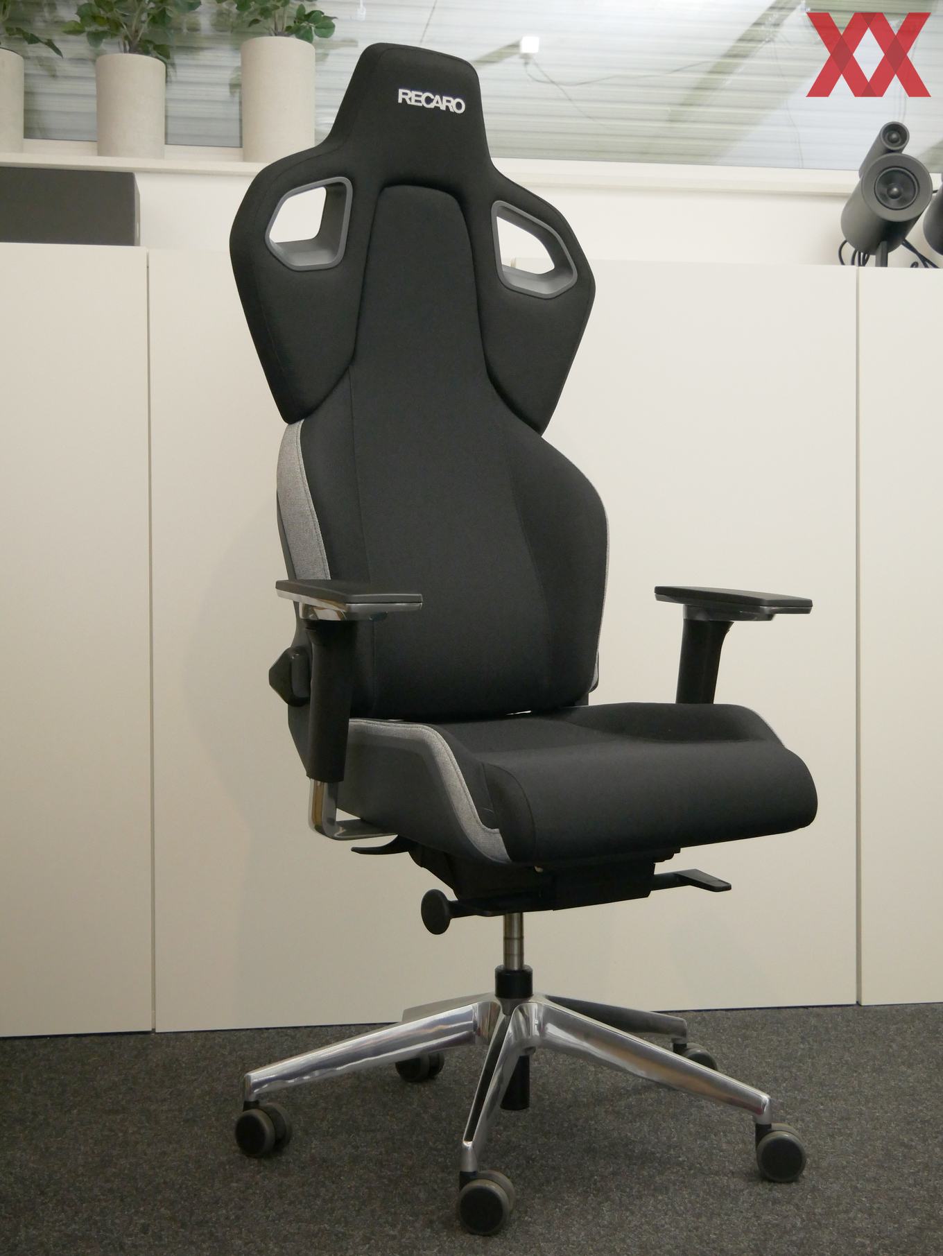 Ebenso können die guten Einstellmöglichkeiten überzeugen. Ob es am Ende wirklich darauf ankommt, eine der vier, von Recaro definierten Positionen einzunehmen, sei einmal dahingestellt, aber gerade im offenen Schwing-Modus folgt der Stuhl gut den Bewegungen des Körpers, was den Komfort langfristig erhöht. Die Armlehnen bieten einen großen Einstellbereich und sind angenehm gepolstert.