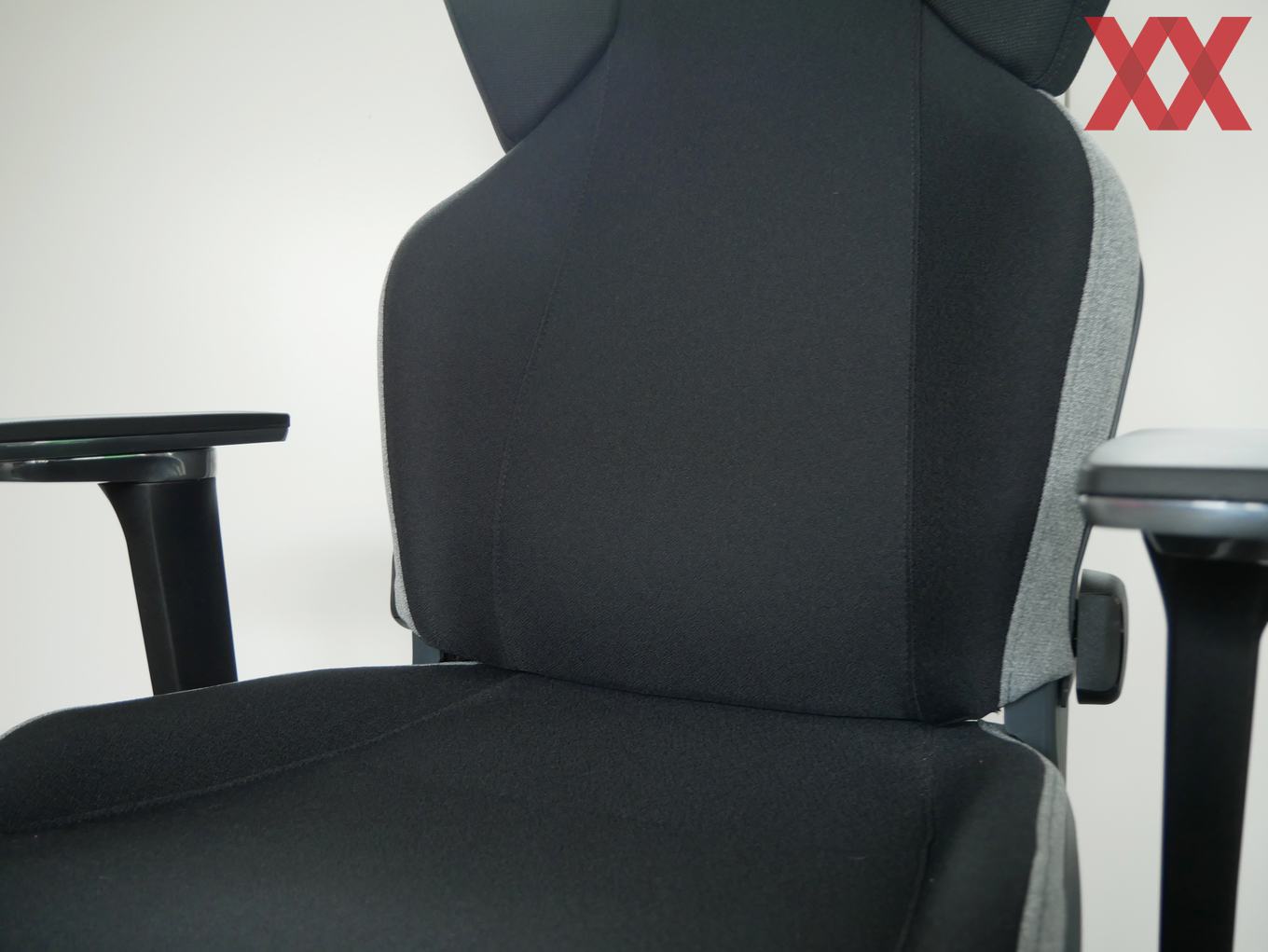 Den Sitzkomfort stufen wir als erstklassig ein. Die Polsterung ist angenehm straff, der atmungsaktive Stoff sorgt dafür, dass auch lange, hitzige Gaming-Sessions mühelos möglich sind. Die Formgebung der Sitzschalte kann überzeugen, denn sie bietet einen guten Seitenhalt, ohne allzu eng geschnitten zu sein. Die Rückenlehne verfügt über eine integrierte Lordosenstütze, die in unserem Fall für eine gute Unterstützung sorgte.