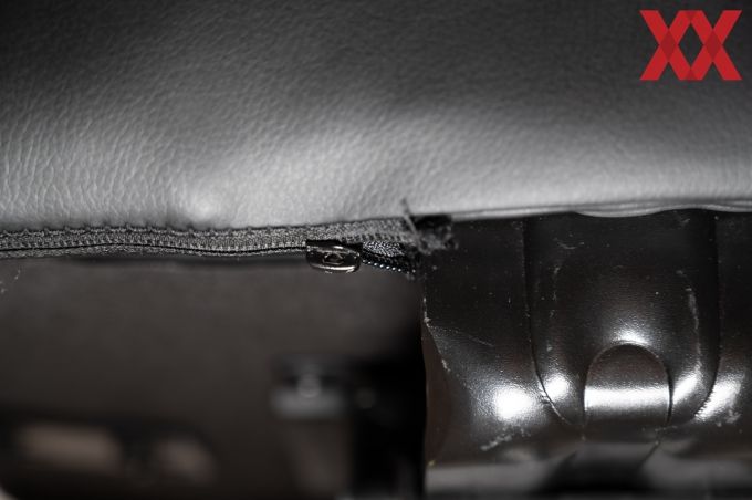 Vergleicht man die Verarbeitungsqualität mit beispielsweise einem Modell von noblechairs, dann fällt auf, dass an der ein oder anderen Stelle etwas Liebe für die Details schön gewesen wäre. So ist das Leder an den Wangen der Rückenlehne nicht so glatt gespannt, wie man es erwarten würde und auch auf der Rückseite der Rückenlehne sind die Reisverschlüsse am Ende nicht sauber vernäht worden. Ob dies nun ein Fehler/Qualitätsmangel unseres Modells darstellt können wir nicht beurteilen, jedoch sollte man an den Stellen noch einmal ein bisschen nacharbeiten.